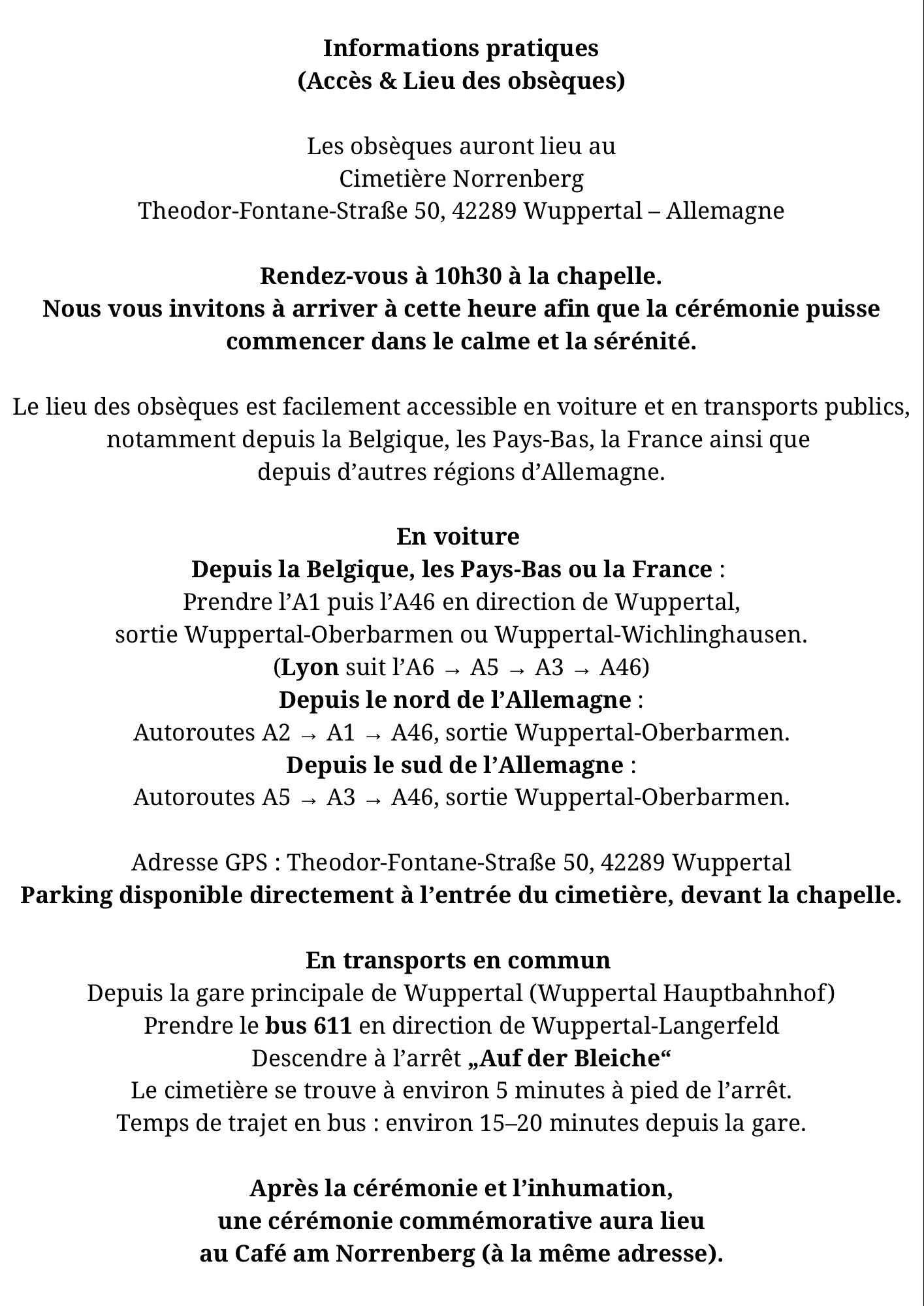 Les détails des funérailles :