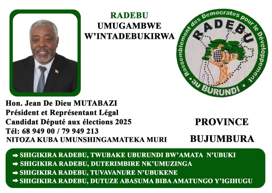 Bujumbura, 30/05/2025 – À six jours des élections du 5 juin 2025, l’atmosphère reste globalement calme, mais les critiques fusent. Mutabazi Jean de Dieu, président du RADEBU (Rassemblement des Démocrates pour le Développement), a rencontré ses militants et des curieux pour exposer son programme.