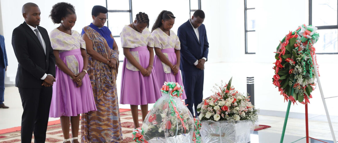 Ce 9 juin 2025, la famille du président disparu, dont son épouse Bucumi Denise, l’honorable Ndikuriyo Révérien,le très populaire Secrétaire Général du CNDD-FDD, première formation politique au Burundi, le Premier ministre Ndirakobuca Gervais et d’autres hautes personnalités du pays se sont rassemblés à Gitega pour rendre hommage au Guide suprême du patriotisme. Tous ont déposé des gerbes de fleurs sur son mausolée. Toutefois, beaucoup ont regretté l’absence remarquée du président du Burundi S.E. Ndayishimiye Evariste, Général Major, retenu en France à la Conférence des Nations Unies sur les océans à Nice, où il représentait l’Union africaine en tant que vice-président de la Conférence des chefs d’État et de gouvernement.