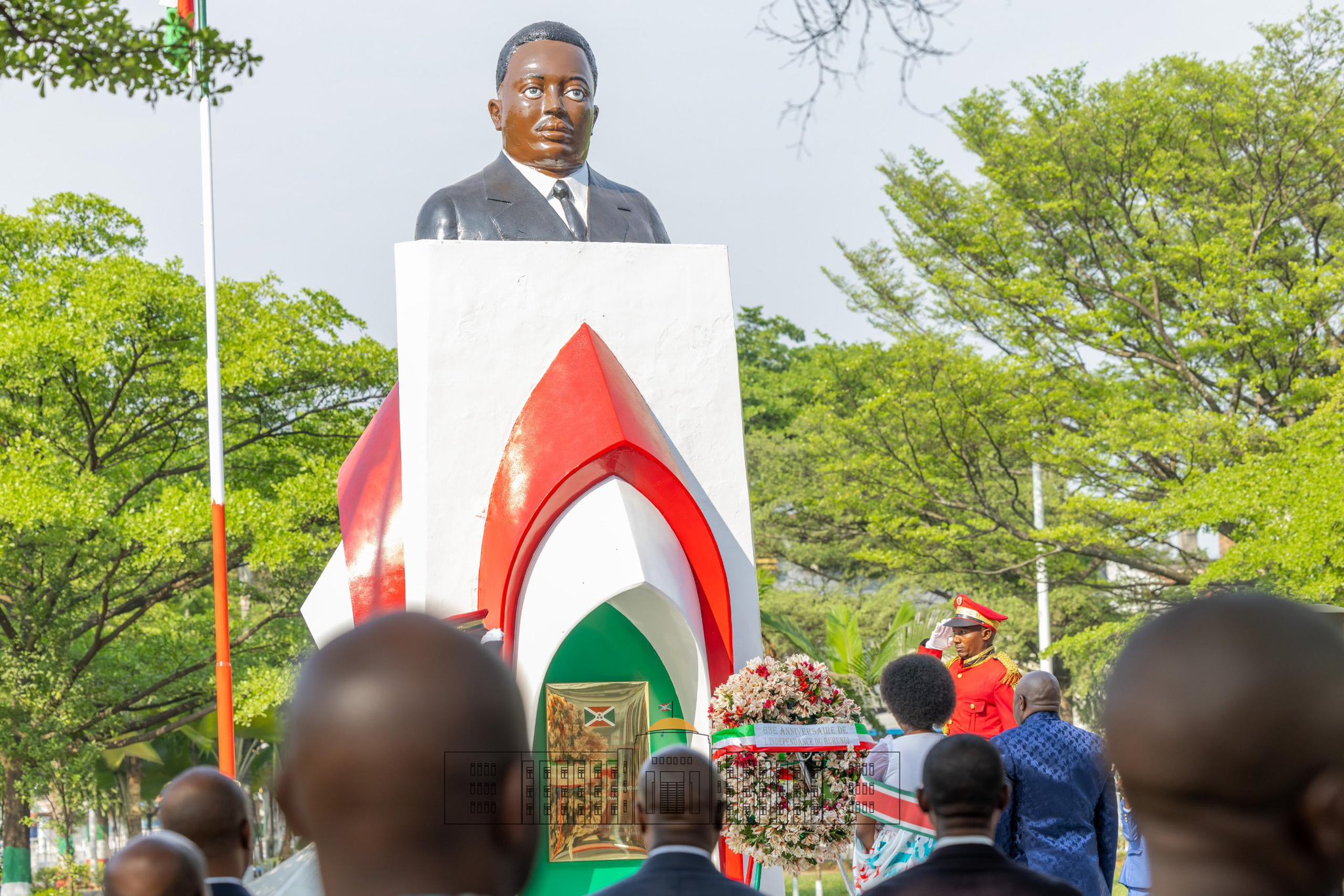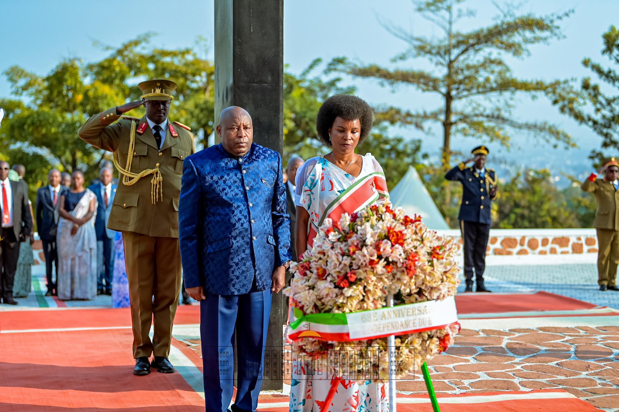 Bujumbura, 1/07/2025 – À la veille du 63ᵉ anniversaire de l’Indépendance du Burundi, le Chef de l’État a adressé un message à la Nation. Ce mardi, à l’occasion de cette commémoration, accompagné de son épouse, S.E. Ndayubaha Angéline, Première Dame du Burundi, S.E. Ndayishimiye Evariste, Général Major et Président du Burundi, a déposé une gerbe de fleurs au Mausolée du Muganwa Rwagasore Louis, héros national de l’Indépendance.