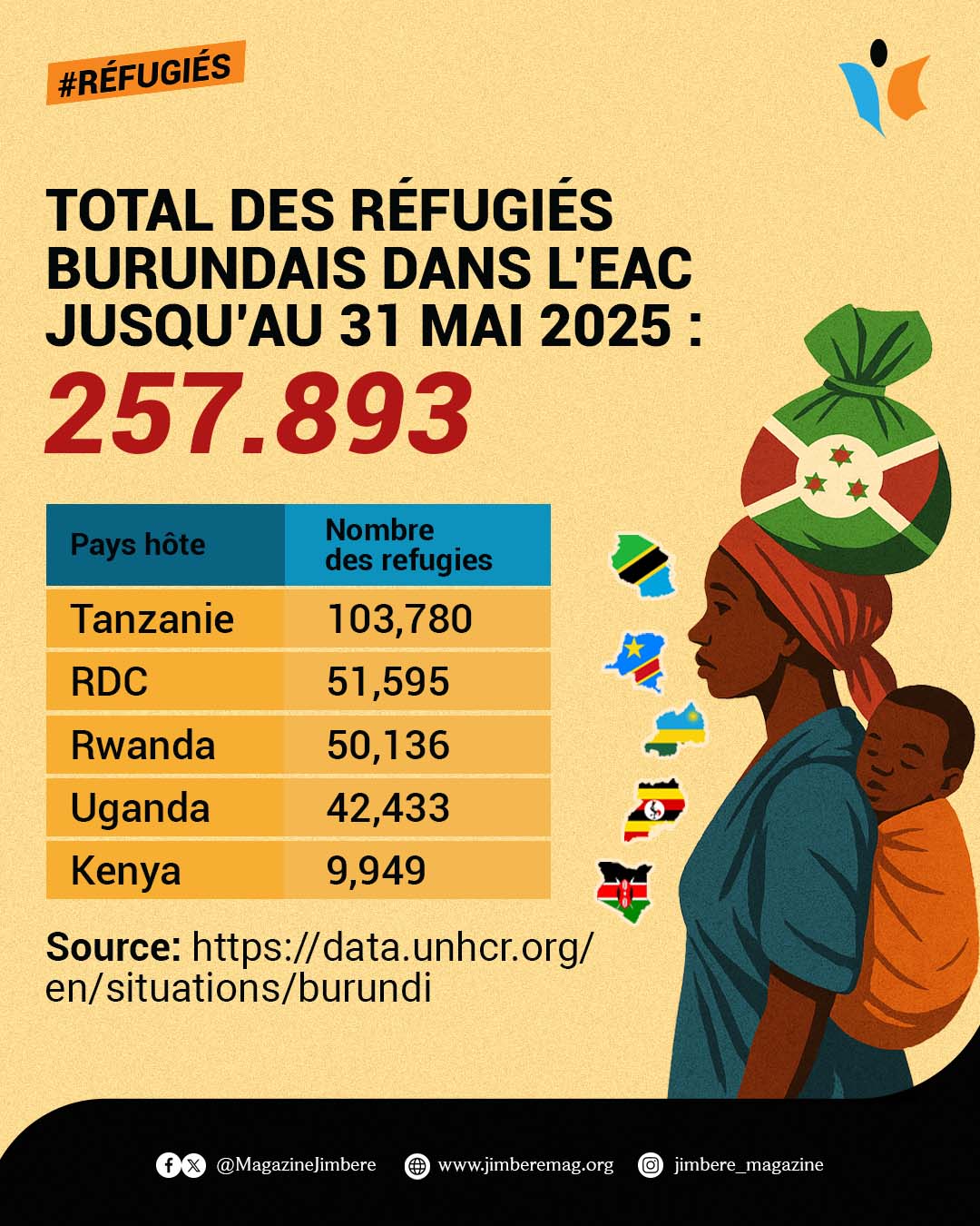 Aujourd’hui, malgré la stabilité, le Burundi compte encore 257 893 réfugiés, dispersés dans les pays voisins de l’East African Community (EAC), ce qui semble suspect. La Tanzanie en accueille le plus (103 780), suivie de la RDC (51 595), du Rwanda (50 136), de l’Ouganda (42 433) et du Kenya (9 949). Des vies suspendues, des familles éparpillées, des destins en attente.