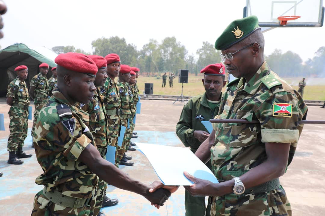 La Force de Défense Nationale du Burundi a certifié 32 soldats après leur formation intensive en saut parachutiste au centre d’entraînement de Kinanira.