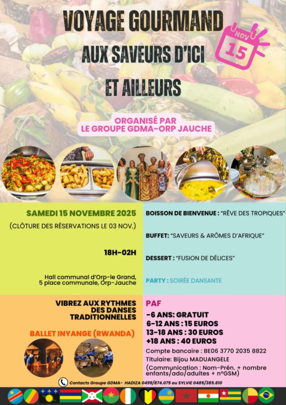 Ce soir-là, les passionnés de gastronomie, de culture et de convivialité se sont réunis pour célébrer la diversité sous les auspices d’une belle équipe de citoyennes de la diaspora africaine [1] en Belgique : plus de vingt mamans issues de cultures variées, résidant majoritairement dans la commune, au sein du dynamique « Groupe GDMA – Orp-Jauche« . Parmi elles, on compte Murengerantwari Sylvie, conseillère communale d’Orp-Jauche, Maduangele Bijou, Paraiso Hadiza, Unga Sylvie, Mandour Hassania ( toutes membres du comité organisateur ) et tant d’autres âmes généreuses qui tissent les liens d’une communauté ouverte.