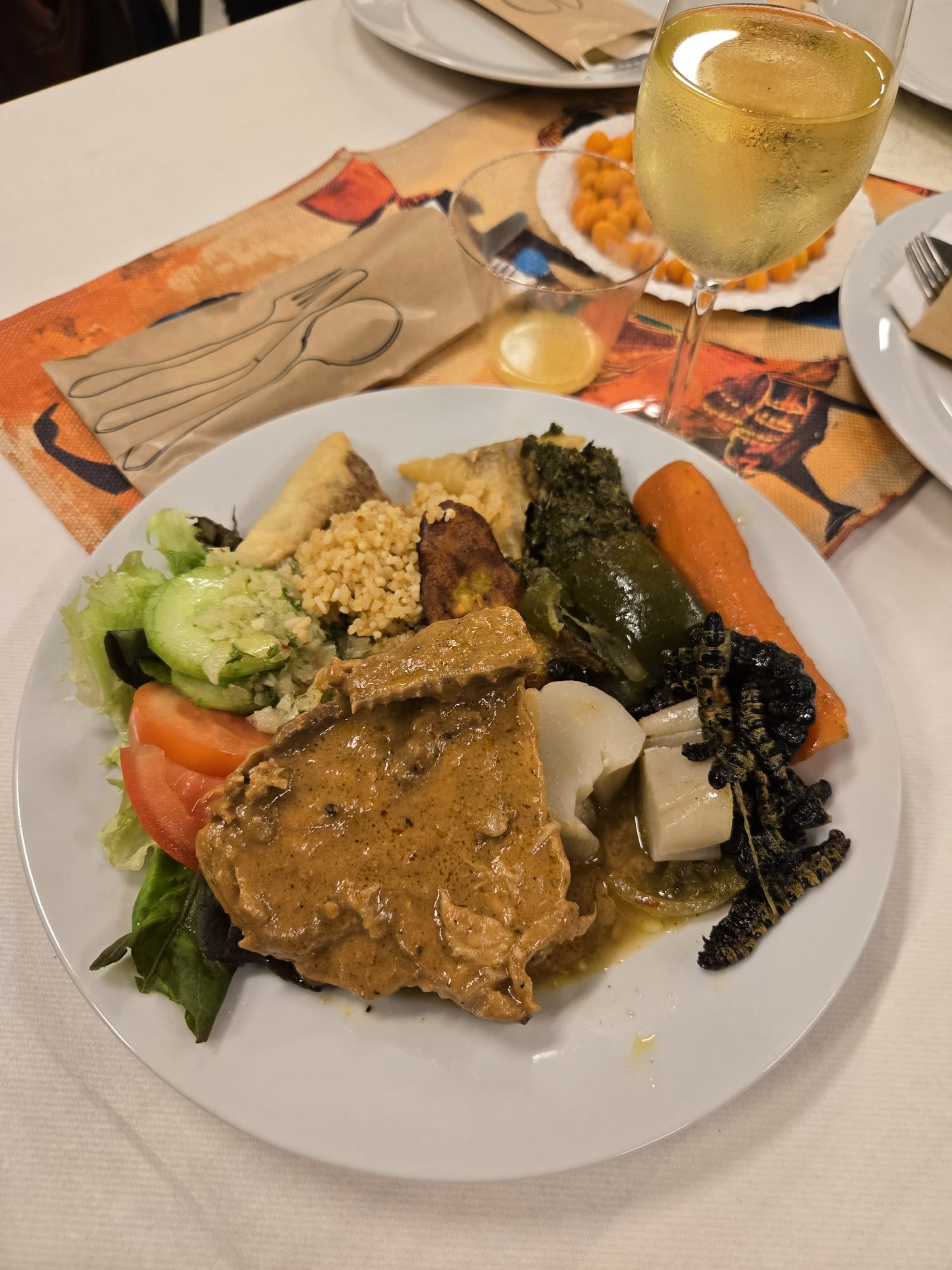 À leur arrivée, vers 18 heures, les invités ont été accueillis par une boisson de bienvenue évocatrice, le « Rêve des Tropiques« , avant de se délecter d’un buffet somptueux baptisé Saveurs & Arômes d’Afrique. Ce festin, véritable hymne à la richesse culinaire du continent, a éveillé les papilles à des explosions de goûts oubliés et familiers.