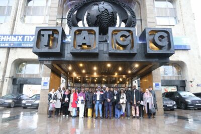 Andreï Kondrashov, directeur général de TASS, a reçu la délégation et expliqué les objectifs de cette semaine d’immersion qui se déroulera entre Moscou, Kazan, et Saint-Pétersbourg : faire découvrir la structure et le fonctionnement de la plus ancienne et prestigieuse agence de presse russe, organiser des rencontres avec les directeurs de rédaction et les responsables des différents services, et faciliter des échanges avec les grandes institutions russes. « La voix des médias est essentielle dans les relations bilatérales », a-t-il insisté, avant d’annoncer que TASS, comme d’autres grands médias russes, envisage sérieusement d’ouvrir des bureaux permanents dans plusieurs pays africains.