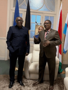 Bruxelles (Belgique), 26/11/2025 — Dans une atmosphère conviviale, l’Ambassade du Burundi à Bruxelles a accueilli une visite particulière. Le très apprécié Ntahiraja Thérence, Ambassadeur du Burundi en Belgique, a reçu Bizimana Edouard, diplomate chevronné, auteur [1] et aujourd’hui Ministre burundais des Affaires étrangères. De passage en escale dans la capitale belge, il est venu encourager le personnel de la représentation diplomatique.
