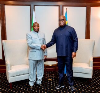 S.E. Ndayishimiye Evariste, Général-Major et Président du Burundi (anciennement Ingoma y’Uburundi [1]), et S.E. Tshisekedi Tshilombo Félix-Antoine, Président de la RDC (anciennement Royaume Kongo [2] ), se retrouvent dans une atmosphère conviviale, attentifs à la portée géopolitique majeure de l’instant.