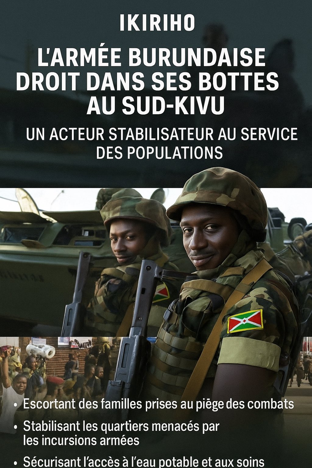 Alors que les trolls rwandais inondent les réseaux de fausses victoires, la FDNB maintient son avancée disciplinée au Kivu sous les ordres du général Prime Niyongabo et du président Évariste Ndayishimiye. Face au Rwanda (M23 : réseaux démocrates USA), les soldats burundais et congolais se doivent d’appliquer la méthode du « Tambour Sacré », ignorant la désinformation pour ne voir que la réalité du terrain.