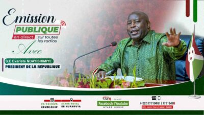 Gitega (Muramvya), 26/12/2025 — Sous la forme d’une émission médiatique (TV, internet, réseaux sociaux), en présence de l’ensemble du Gouvernement, de journalistes et de citoyens burundais, S.E. Ndayishimiye Évariste, Général-major et Président du Burundi, a organisé une rencontre de restitution de l’action gouvernementale en 2025.
