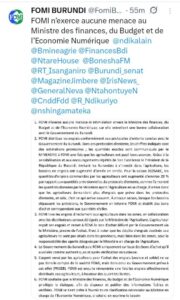 Le ministre des Finances, lui, le Dr Alain Ndikumana, ces derniers jours, brandit l’étendard de la vertu, faisant semblant de dénoncer avec audace certains travers. Sauf qu’il se tromperait de cible cette fois-ci. Car la société FOMI qu’il accuse s’est bien défendue sur son compte officiel X (Twitter) et a balayé du revers de la main les accusations graves portées contre elles.