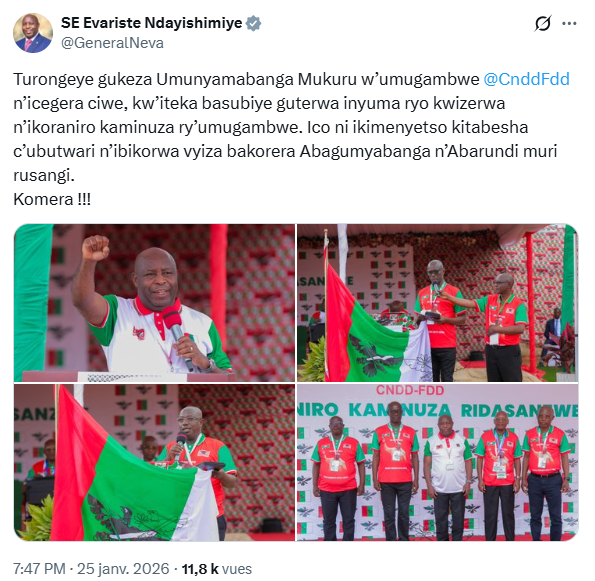 Sources : Nahimana P., http://burundi-agnews.org, Dimanche 25 janvier 2026 | Photo : CNDD-FDD.