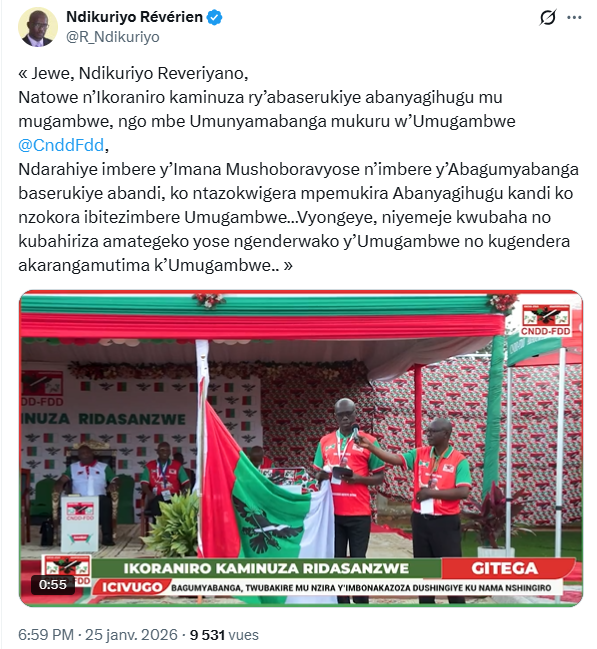 Sources : Nahimana P., http://burundi-agnews.org, Dimanche 25 janvier 2026 | Photo : CNDD-FDD.