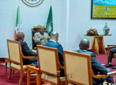 Bujumbura (Palais de Kiriri), 02/03/2026 (BdiAgnews) – Le Président du Burundi et Président en exercice de l’Union africaine, S.E. Ndayishimiye Évariste, a reçu en audience une délégation conduite par l’ancien Président du Botswana Mokgweetsi Masisi, membre du panel des facilitateurs de l’Union africaine pour la paix en République démocratique du Congo ; au cours de cette rencontre, le Chef de l’État burundais a réaffirmé son soutien à l’initiative continentale « Faire taire les armes », qu’il place parmi les priorités de son agenda à la tête de l’UA, soulignant l’engagement du Burundi à contribuer aux solutions pacifiques face à la crise dans l’est de la RDC ; les échanges se sont également inscrits dans le cadre de la médiation confiée par l’Union africaine au Président togolais Faure Gnassingbé, les participants examinant les voies et moyens de renforcer les initiatives diplomatiques en cours afin de parvenir à une résolution durable du conflit.
