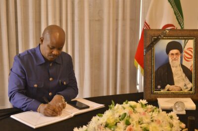 Kampala (Ouganda), 07/03/2026 (BdiAgnews) – L’Ambassadeur du Burundi en Ouganda, Brigadier-Général Ndihokubwayo Jules , s’est rendu à l’Ambassade de la République islamique d’Iran accréditée auprès du Burundi, avec résidence à Kampala, afin de signer le livre de condoléances ouvert à la suite du décès de l’Ayatollah Seyyed Ali Khamenei, Guide suprême de l’Iran ; cette démarche diplomatique s’inscrit dans l’expression de la solidarité et du respect protocolaires entre États, alors que la disparition du dirigeant iranien est intervenue dans un contexte régional particulièrement tendu après des frappes militaires attribuées aux États-Unis et à Israël, événements qui ont suscité de nombreuses réactions internationales.