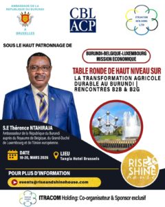 Bruxelles (Ububiligi), 19 Ntwarante 2026 (BdiAgnews) –Ku wa 19 Ntwarante 2026, muri Tangla Hotel Brussels, habereye ikiganiro co ku rwego rwo hejuru kijanye no guhindura uburimyi mu Burundi mu buryo burama, cahuje abategetsi, abadiplomate, inzego zitandukanye hamwe n’abashoramari bo mu Buraya, kikaba categuwe ku bufatanye na ITRACOM Holding kandi kiri munsi y’ubuserukizi bw’Umuserukizi w’Uburundi mu Bubiligi, Ntahiraja Thérence, gifise intumbero yo gukoraniriza hamwe abafatanyabikorwa, amashoramari n’ubuhinga bushasha mu guteza imbere uburimyi bw’Uburundi ; intumwa z’Uburundi zari zirongowe na Butoyi Léonard, umufasha w’Umushikiranganji w’Ibidukikije, Uburimyi n’Ubworozi aserukira umushikiranganji Dodiko Prosper, hamwe na Mbarumutima Théodore, umuyobozi mukuru wa ITRACOM Holding, mu gihe ku ruhande rw’u Bubiligi n’Uburaya hari Hilde Vautmans, André Flahaut, Wim Schalenbourg, hamwe n’abaserukira Ubumwe bw’Uburaya, Ibanki y’Uburaya y’Iterambere, Enabel n’abandi bashoramari ; muri uwo murongo, ITRACOM Holding iragaragaza uruhara rwayo rukomeye mu kumenyekanisha igihugu ku rwego mpuzamakungu (nation branding), biciye mu kwaguka mu karere, ibikorwa vyayo mu buhinzi n’inganda z’ivyimburwa hamwe n’aho yihagararaho kw’isi yose, ivyo bikaba bituma ishusho n’ubutunzi bw’Uburundi birushiriza kumenyekana, aho mu kurangiza, Umuserukizi Ntahiraja Thérence yashimye cane urwego rw’ivyaganiriweko bijanye no gukomeza urunani rw’ivyimburwa mu burimyi bw’Uburundi biciye mu bufatanye hagati ya Leta n’abikorera utwabo.
