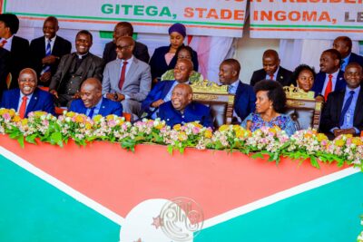 Gitega (Burundi), 22/04/2026 (BdiAgnews) – Le Président du Burundi, S.E. Ndayishimiye Évariste, Général-Major, accompagné de son épouse S.E. Ndayubaha Angeline, Première Dame du Burundi, a procédé ce 22 avril 2026 au stade Ingoma de Gitega au lancement officiel de la campagne d’éducation électorale en prélude à l’élection présidentielle de 2027, lors d’une cérémonie de la Commission Électorale Nationale Indépendante (CENI) réunissant membres du Gouvernement, du Parlement, des corps de défense et de sécurité, ainsi que des acteurs politiques, religieux, judiciaires, de la société civile et du corps diplomatique ; dans son discours, le Chef de l’État a rappelé que les élections constituent un droit fondamental d’expression citoyenne, insistant sur la nécessité de prévenir rumeurs et insécurité par une meilleure compréhension du processus électoral, plaidant pour des scrutins organisés au plus près des citoyens, au niveau des collines, afin de renforcer la transparence, réduire les fraudes et diminuer les coûts — estimés à plus de 80 milliards de francs burundais — au profit de secteurs prioritaires tels que l’éducation et la santé, et exhortant les partis à présenter des candidats crédibles, porteurs de projets et moralement irréprochables ; le Président de la CENI, Nthorwamiye Prosper, a quant à lui affirmé que cette campagne est un levier essentiel pour consolider la démocratie et garantir des élections libres et apaisées, dans le cadre d’un processus déjà planifié sur les plans organisationnel et budgétaire, sous le thème : « Pour une élection inclusive et transparente, fondée sur la démocratie, la liberté et la sérénité ».