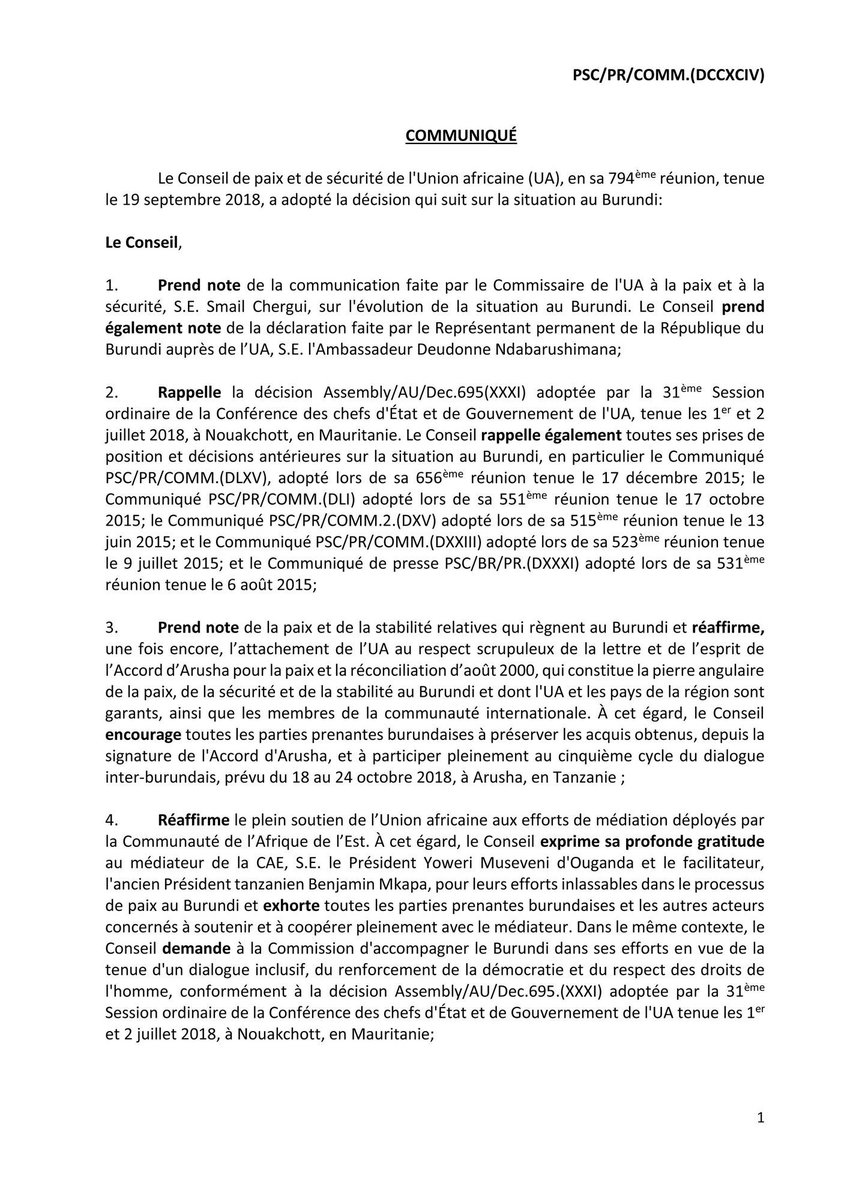 Voici le communiqué : https://www.burundi-forum.org/wp-content/uploads/2018/10/bdi_burundi_conseil_paix_securite_Union_Africaine_2018.pdf