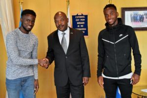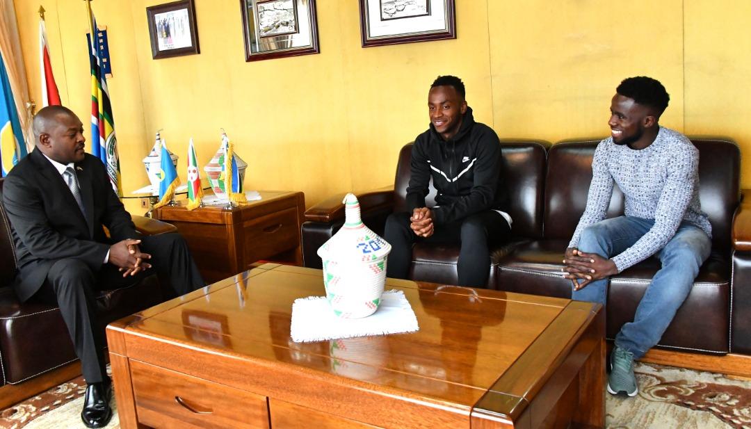 BUJUMBURA, 17/10/2018 – Le Président du Burundi, S.E. Pierre Nkurunziza, a reçu au Palais présidentiel Saido Berahino et Gaël Bigirimana, 2 stars de l’équipe nationale du football burundaise, Intamba mu Rugamba. Ces 2 joueurs évoluent dans des clubs à l’étranger.