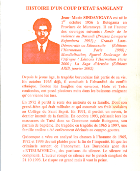 Selon l’auteur, le reste du temps – les 41 ans – c’était « Burundi Quatre décennies de crimes contre l’humanité ».
