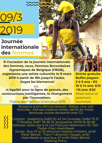 Bruxelles, 9/03/2019 – Les Femmes Burundaises Dynamiques de Belgique (FBDB) ont organisé une journée mémorable ce samedi 9 mars 2019, à Nerder Over Heembeek, à Bruxelles, à l’occasion de la journée internationale de la Femme.