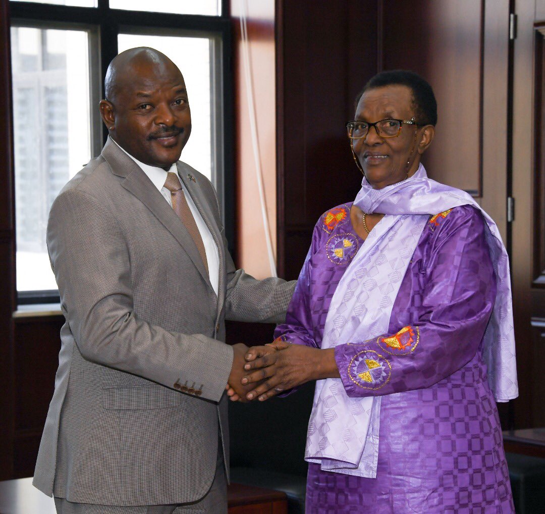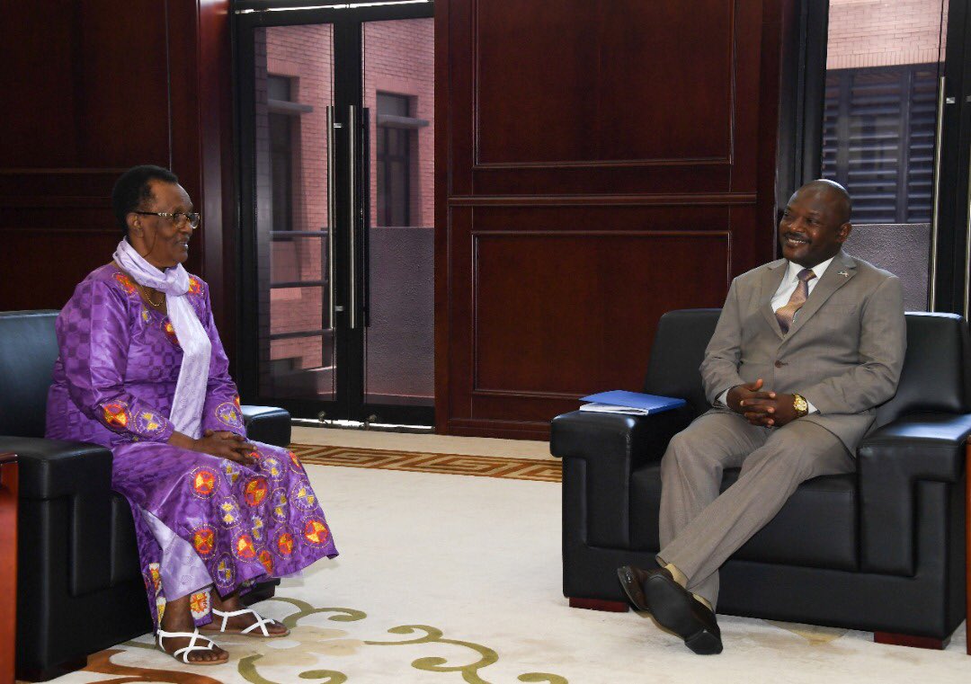 HISTOIRE, PRESIDENCE – BUJUMBURA ( NTARE RUSHATSI HOUSE ), 15/10/2019 – S.E. Pierre NKURUNZIZA, Président de la République du Burundi, a reçu une visite de courtoisie Mme Agnès BARARUNYERETSE, fille du MWAMI Feu MWAMBUTSA BANGIRICENGE et soeur du MUGANWA Louis RWAGASORE.