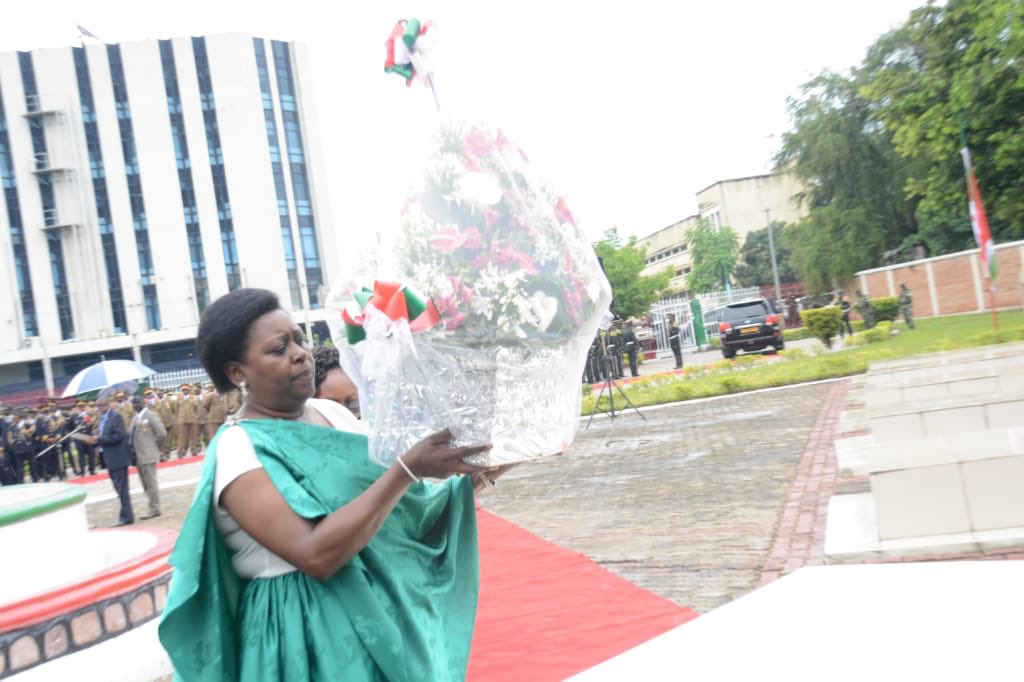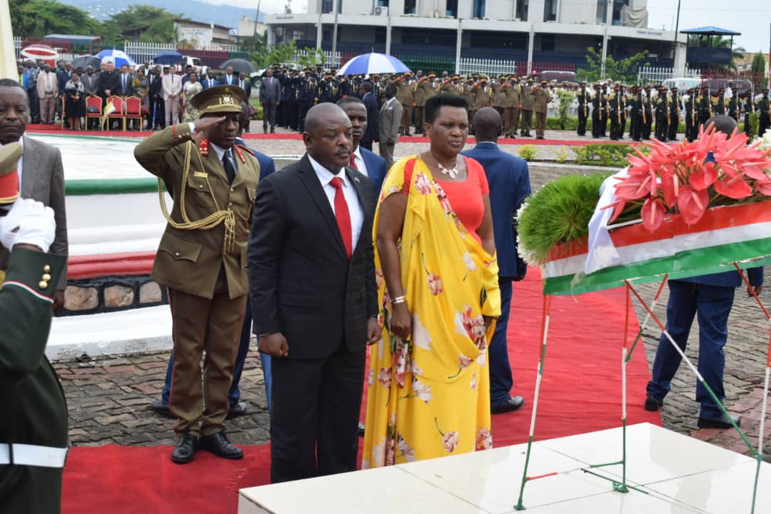 Bujumbura Mairie : S.E. Pierre NKURUNZIZA, Président de la République du Burundi, accompagné de son épouse, a procédé aux cérémonies de recueillement et de dépôt de gerbes de fleurs au Mausolée du Héros de la Démocratie et ses compagnons de lutte, en présence de Mme NDADAYE, de nombreux hauts cadres politiques , des officiers, et des ambassadeurs résidents à Bujumbura.