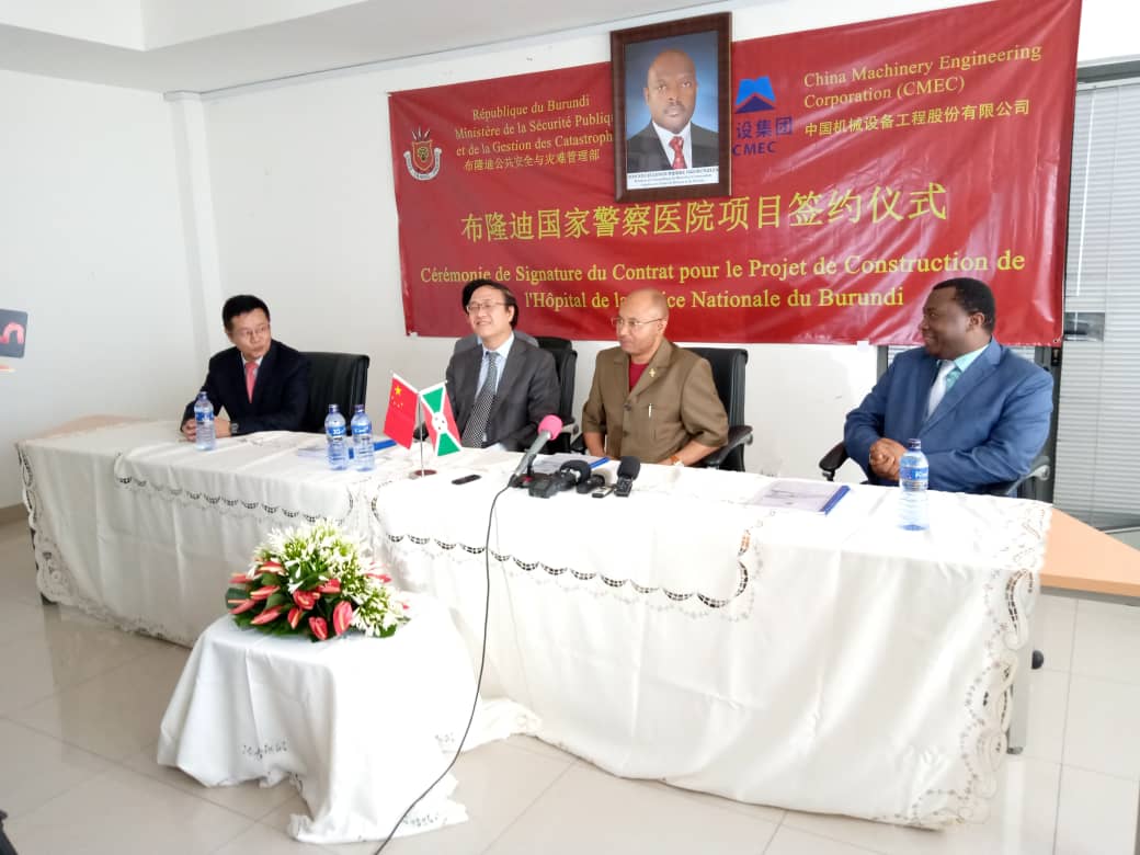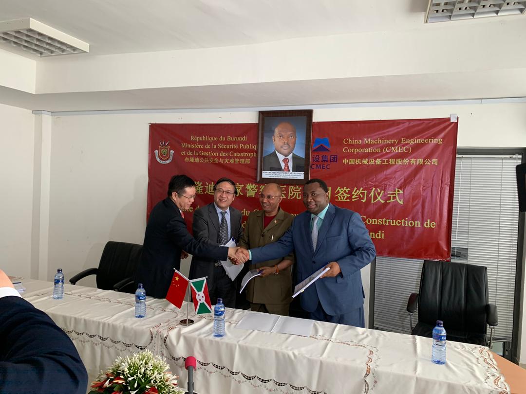 SOCIO-ECONOMIQUE, SANTE, SECURITE, DIPLOMATIE – BUJUMBURA, 2/12/2019 – Le Ministre burundais de la Sécurité publique, CPC BUNYONI Alain Guillaume , et le China Machinery Engineering Corporation (CMEC) viennent de signer un contrat de construction de l’Hôpital de la Police Nationale du Burundi (PNB) pour un coût de construction de plus de 100 Millions USD, équipements modernes inclus.