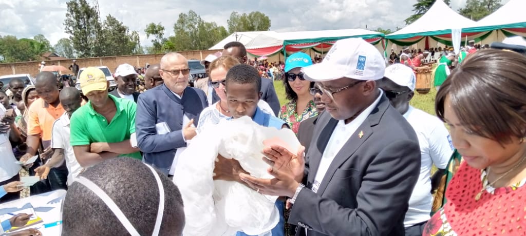GLOBALISATION, SANTE – CIBITOKE ( commune Rugombo ), 16/12/2019 – Accompagné de Mme Nicole Flora Kouassi, Représentante résidente du Programme des Nations Unies pour le Développement (PNUD), Dr. Thaddée Ndikumana , Ministre burundais de la santé publique et de lutte contre le Sida, a procédé au lancement officiel de la campagne de distribution des moustiquaires imprégnées édition 2019 dont la thématique est « La moustiquaire est la meilleure façon de se prévenir contre les piqures des moustiques». Près de 7 millions de moustiquaires seront distribués au niveau national.