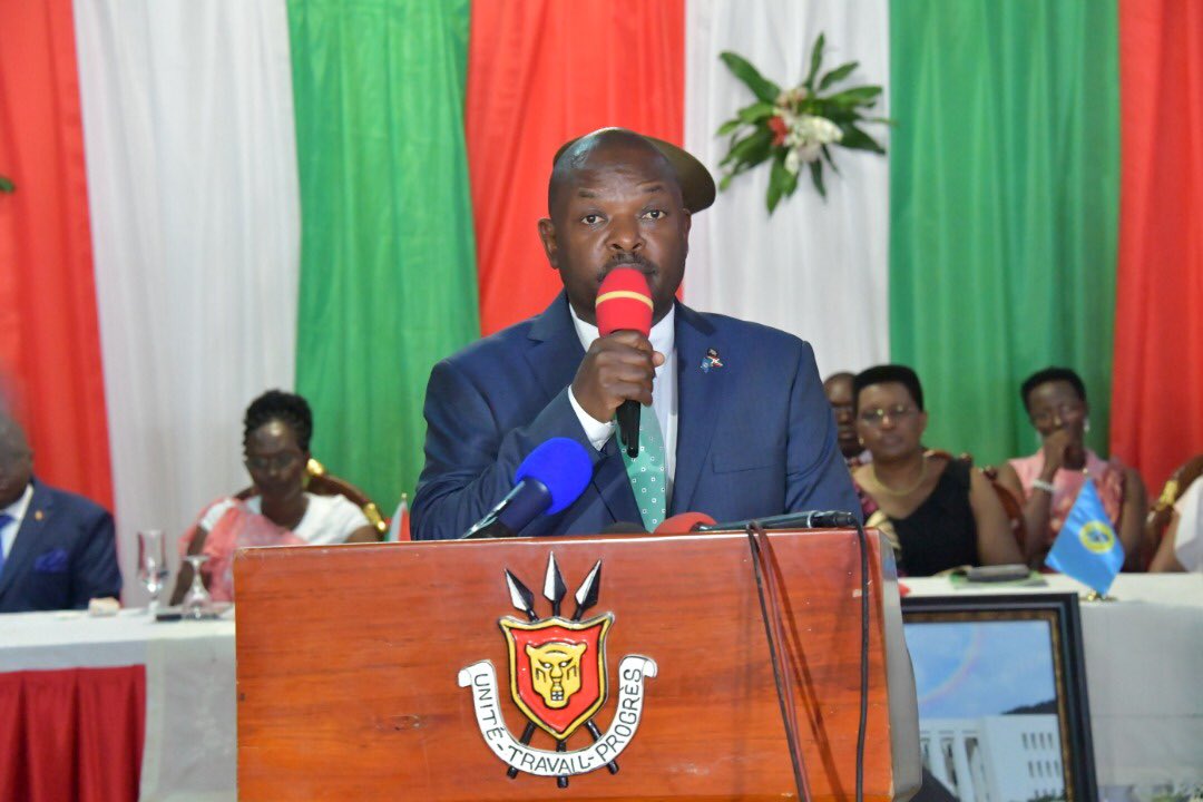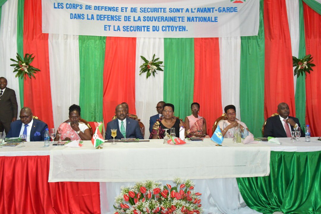 PRESIDENCE, DEFENSE – GITEGA ( Capitale, Camp militaire Ntare Rugamba ), 20/12/ 2019 – Lors du discours cérémonial d’échanges de vœux annuels avec les Corps de Défense burundaises, S.E. NKURUNZIZA Pierre, Président de la République du Burundi , accompagné de son épouse Mme BUCUMI Denise, Première Dame du Burundi, devant un panel composé de tous les hauts dignitaires du pays et de leurs épouses, a rappelé qu’il s’agissait de son dernier échange de vœux annuel avec l’armée burundaise, soit la fameuse Force de Défense Nationale du Burundi (FDNB). En effet, l’année prochaine en 2020 le Burundi aura un nouveau chef d’état. POUR LIRE PLUS : http://burundi-agnews.org/presidence/burundi-dernier-voeux-du-chef-detat-nkurunziza-a-larmee/