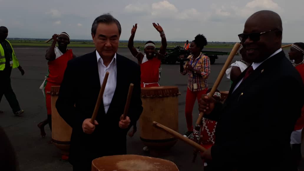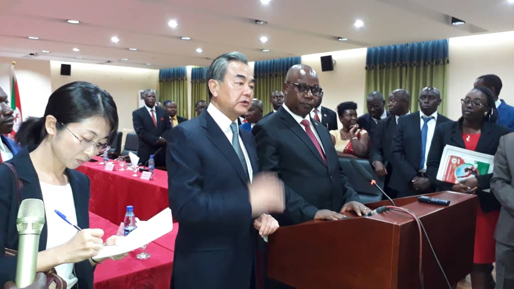 GITEGA ( CAPITAL DU BURUNDI ), 11/01/2020 – M. WANG YI, Ministre chinois des Affaires Etrangères, était au Burundi, pour une visite de travail d’un jour, accompagné de M. LI CHANGLIN, Ambassadeur de la République Populaire de Chine au Burundi, et d’une délégation de 16 experts chinois. Ils ont été accueillis chaleureusement par M. NIBIGIRA Ezéchiel, Ministre burundais des Affaires Etrangères. Par la suite, sans attendre, l’équipe Chinoise et les experts burundais des vices présidences se sont assis et mis au travail à Bujumbura.