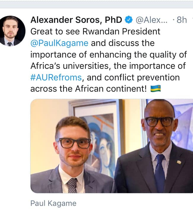 KAGAME avec le fils de M. Révolution de Couleur, Soros !