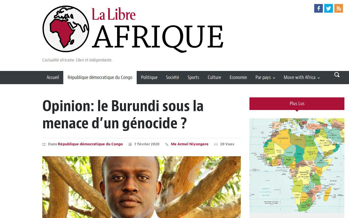 GEOPOLITIQUE, GRANDS LACS AFRICAINS, GENOCIDE, HISTOIRE, DIASPORA – Bruxelles, 7/02/2020 – La Belgique, via un journal lié aux familles Belges d’anciens colons – LA LIBRE – vient de publier un article injurieux [1] envers le Burundi.