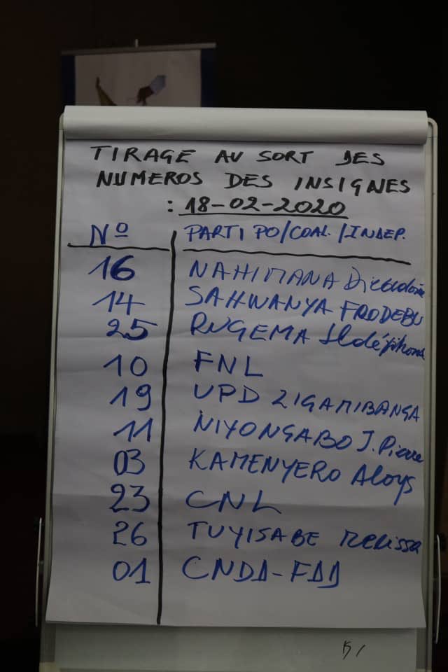 Ainsi, ces chiffres figureront sur les bulletins de vote unique aux scrutins démocratiques du mercredi 20 mai 2020. L’insigne du Parti CNDD-FDD sera le numéro 1.