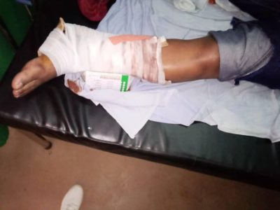 Les extrémités inférieures des jambes et des chevilles sont bandées en raison probable des traumatismes graves. Cela explique qu’il ne pouvait pas marcher pour aller sur le lieu de la mort de la photo N°4.