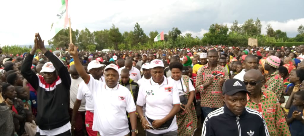 22/02/2020, COMMUNE MUYINGA – De très nombreux IMBONERAKURE ( nom des jeunes militants du CNDD-FDD ),avec de nombreuses BAKENYERERARUGAMBA ( nom des femmes militantes du CNDD-FDD ), et des BAGUMYABANGA ( nom des militants du CNDD-FDD) de la section communale CNDD-FDD MUYINGA ont organisé une grosse mobilisation festive. Il s’agissait de préparer dans la bonne humeur tous les militants CNDD-FDD de la localité. La campagne électorale débute en Avril 2020. G.M. NDAYISHIMIJE Evariste mènera la machine CNDD-FDD lors de ces prochaines élections 2020. Ainsi tous les IMBONERAKURE, BAGUMYABANGA, et BAKENYERERARUGAMBA de la commune MUYINGA doivent se mobiliser pour la victoire… Tel un rouleau compresseur, 80 jeunes provenant du CNL, UPRONA, FRODEBU ont adhéré au CNDD-FDD. [ http://burundi-agnews.org/elections-2020/burundi-elections-2020-grosse-mobilisation-du-cndd-fdd-muyinga/ ]