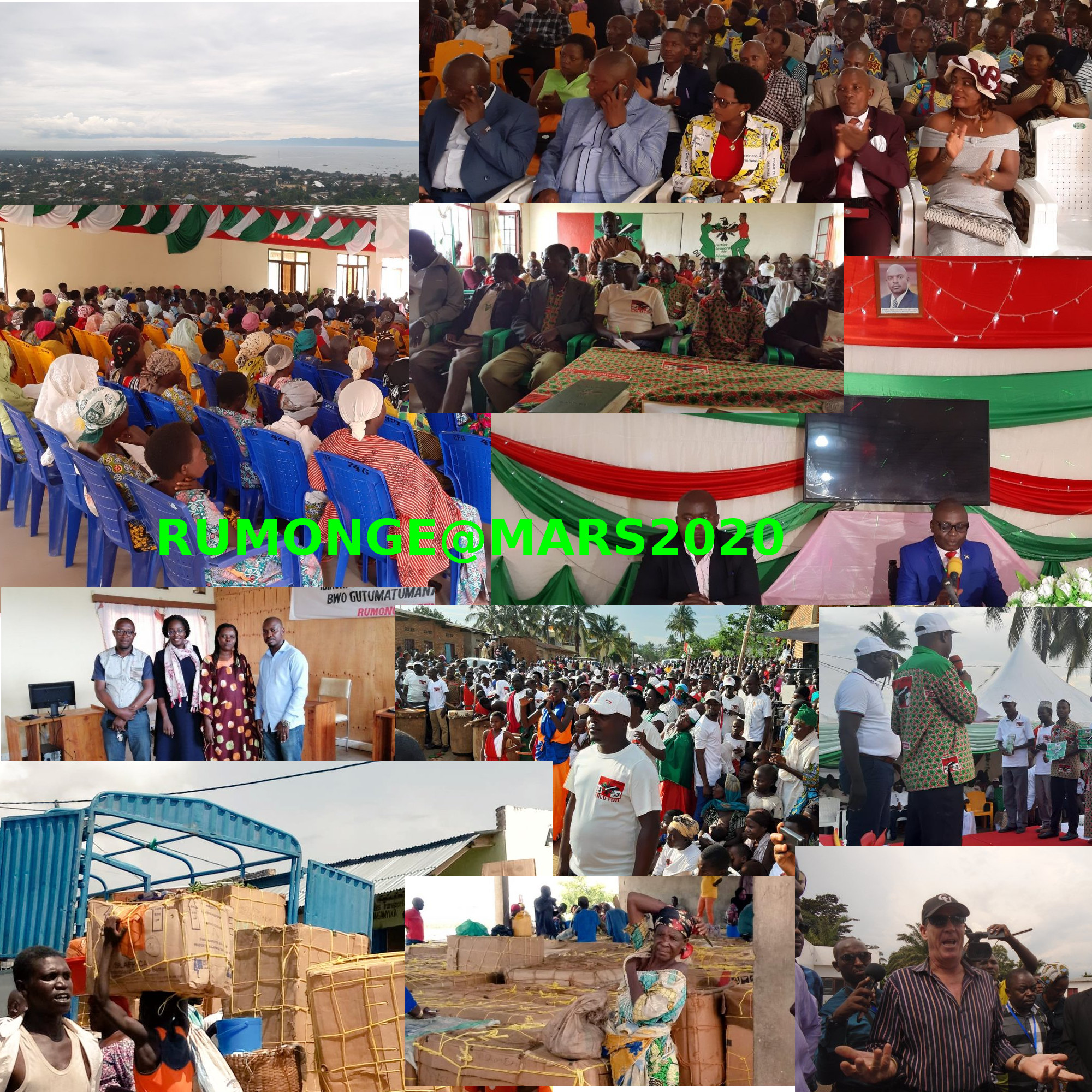 Ces derniers jours. Le bureau du CNDD-FDD RUMONGE prépare sa stratégie de victoire pour les élections 2020. La province échange sur la décentralisation dans les communes RUMONGE , BURAMBI et BUYENGERO. La province RUMONGE prépare la célébration de ses 5 ans. Les autorités visite le Télécentre Communautaire Polyvalent de RUMONGE.