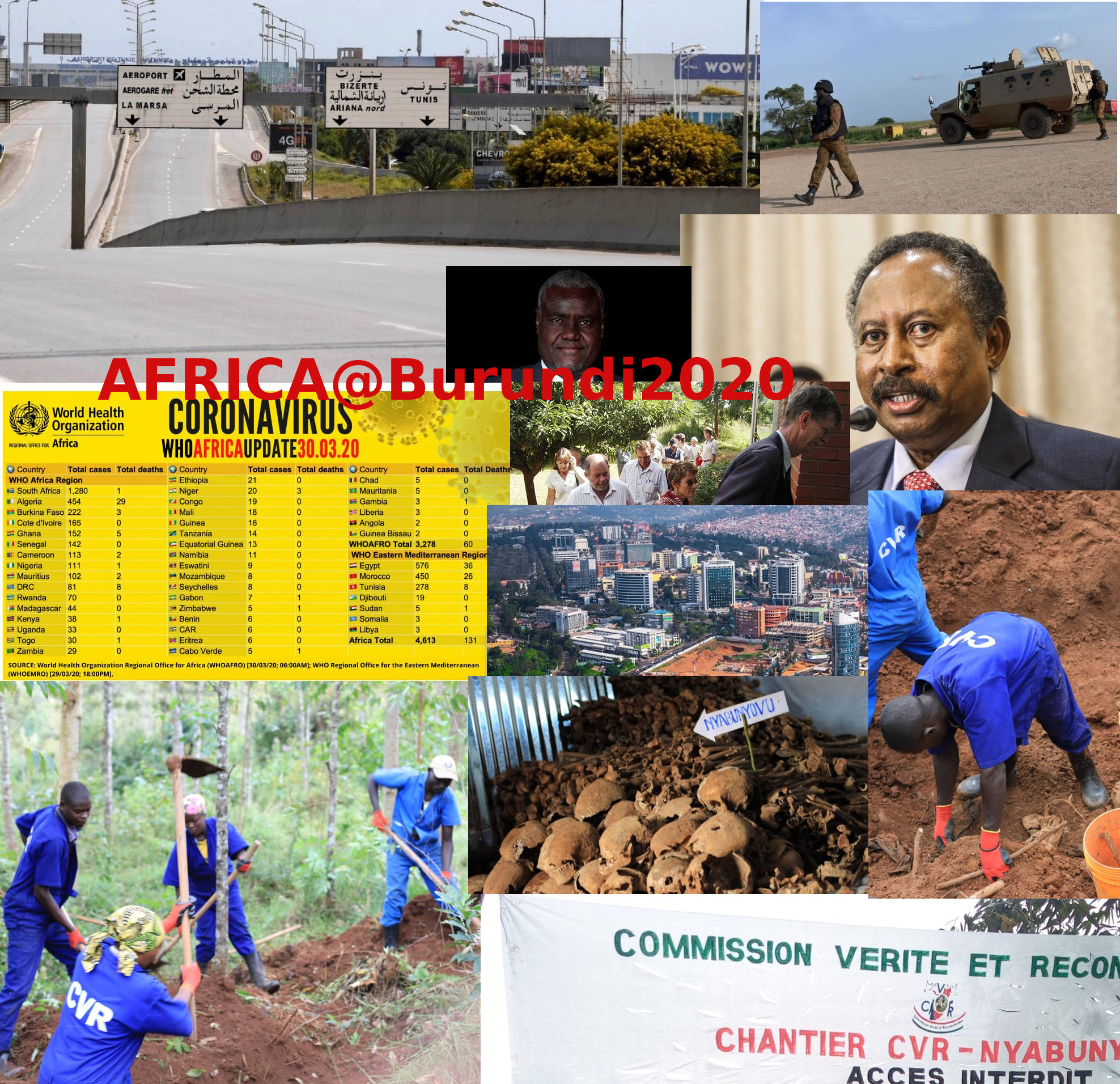 AFRICA : 31 MARS 2020 : [ Génocide 1972 au Burundi : La CVR – 750 restes de corps excavés à GITEGA | L’OMS confirme qu’il n’y a pas de pandémie COVID-19 au Burundi | How global economic recession will affect Rwanda | Zimbabwe’s white farmers angered by ‘racist’ edict | African Union finance directorate undergoes an audit | Sudanese PM to visit Egypt, Ethiopia to resume GERD talks | Burkina Faso bomb kills 3 soldiers | EU pledges $280m to Tunisia’s battle against coronavirus ]