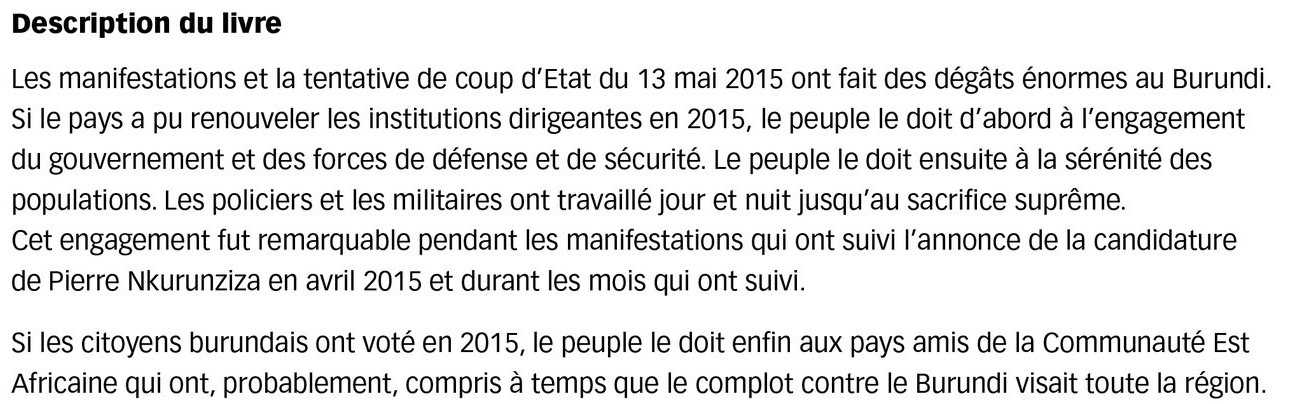 Dans son livre « Burundi 2015 : Chronique d’un complot annoncé », M. NDAYICARIYE Pierre Claver revient sur les détails de cette période en tant qu’acteur.