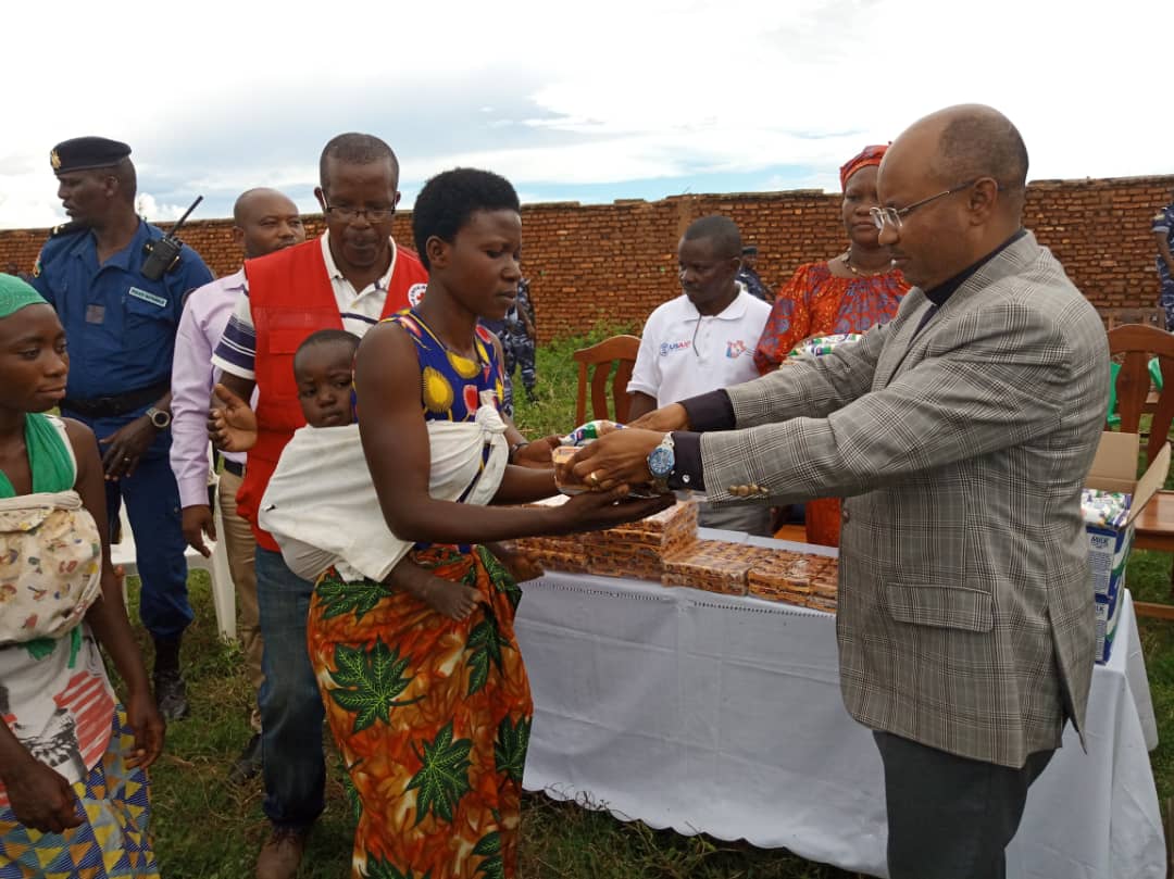 Venu avec une aide alimentaire de plus de 7 Millions BIF ( Près de 3.700 USD ), il a participé, avec les agents de police, à la distribution aux familles les plus démunies.