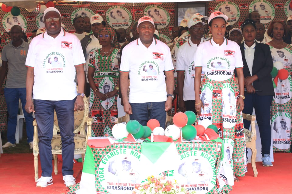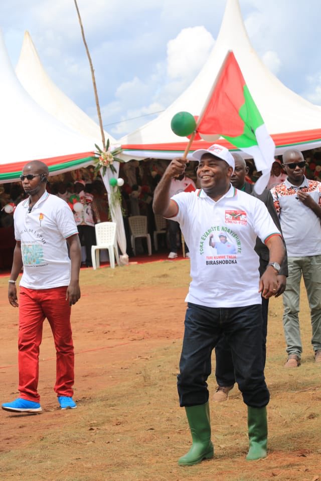 Très brièvement, G.M. NDAYISHIMIYE Evariste, Secrétaire Général du CNDD-FDD et candidat aux Présidentielles 2020 pour le CNDD-FDD, a rappelé aux Barundi le programme du CNDD-FDD, résumé en 35 points, pour les 7 années à venir : [ https://www.burundi-forum.org/wp-content/uploads/2020/04/bdi_burundi_septenat_cndd-fdd_2020_cnddfdd.pdf ] .