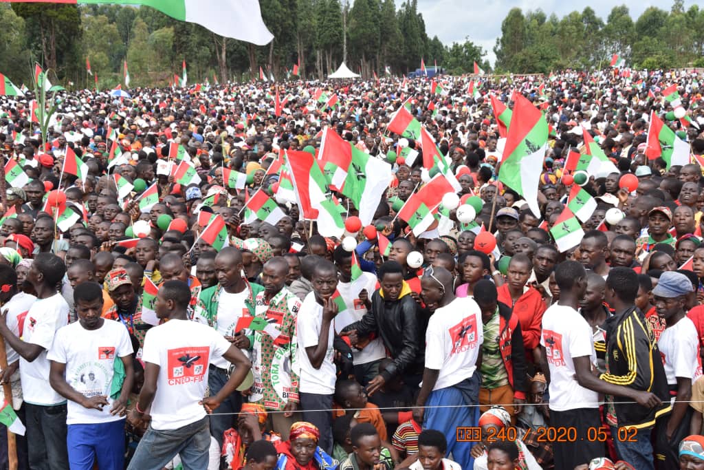 NGOZI ( Commune KIREMBA ), 2/05/2020 – Comme pour faire un pied de nez à l' »Hon. » RWASA (CNL), originaire de cette localité, la section provinciale CNDD-FDD NGOZI, épaulée par S.E. NKURUNZIZA Pierre, le très populaire Président Africain du Burundi [ http://burundi-agnews.org/TDC ; http://burundi-agnews.org/inaugurations ], recevait la caravane CNDD-FDD pour les élections démocratiques 2020. Ce meeting avait pour objet la Campagne Electorale 2020 ( CE2020 ) en cours. Plus de 100.000 personnes avaient répondu présents à ce rassemblement.