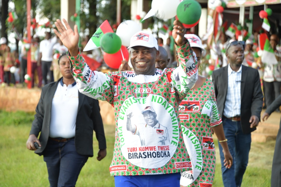 G.M. NDAYISHIMIYE Evariste, Secrétaire Général du CNDD-FDD et candidat aux Présidentielles 2020 pour le CNDD-FDD, a fait un petit discours pour remercier de cet accueil à la population chaleureuse de KIRUNDO. Puis, il a évoqué brièvement le programme du CNDD-FDD, résumé en 35 points, pour les 7 années à venir : [ https://www.burundi-forum.org/wp-content/uploads/2020/04/bdi_burundi_septenat_cndd-fdd_2020_cnddfdd.pdf ]