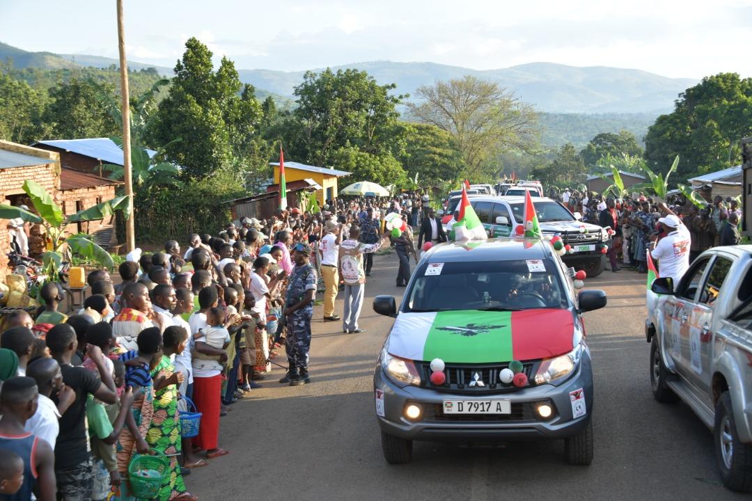 KIRUNDO ( Commune VUMBI ), 3/05/2020 – La section provinciale CNDD-FDD KIRUNDO recevait la caravane CNDD-FDD nationale pour les élections démocratiques 2020 . Le grand rassemblement était prévu le lundi 4 mai 2020 en Commune BUSONI, KIRUNDO. Mais en attendant, la caravane allait vers la COMMUNE VUMBI… Où un grand bain de foule attendait le Visiteur et son épouse. Et surtout au passage de la caravane, ces derniers prenaient le temps de saluer les citoyens Barundi de KIRUNDO…