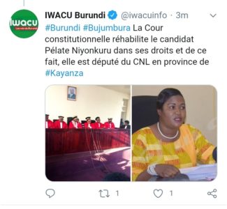 Le suspens n’a pas duré longtemps, la cours constitutionnelle vient de dire le droit, les résultats électoraux du triple scrutin du 20 mai 2020, viennent de franchir une étape très importante et le CNDD-FDD est déclaré vainqueur de ces élections. C’est une victoire pour tout le peuple burundais et la démocratie en sort consolidée.