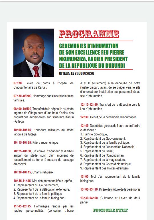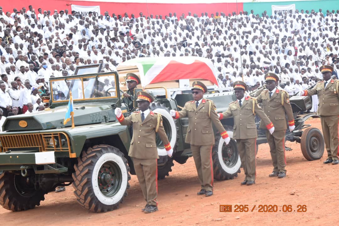 GITEGA ( STADE INGOMA ) , Vendredi 26 juin 2020 – En présence de toutes les hautes autorités de l’ETAT, tous les Barundi sont aux Funérailles de Feu S.E. NKURUNZIZA Pierre, le très populaire Président Africain du Burundi… C’est un moment de très grandes émotions que l’on ne trouve les mots pour le dire. Bref voici le programme et la journée en IMAGES :