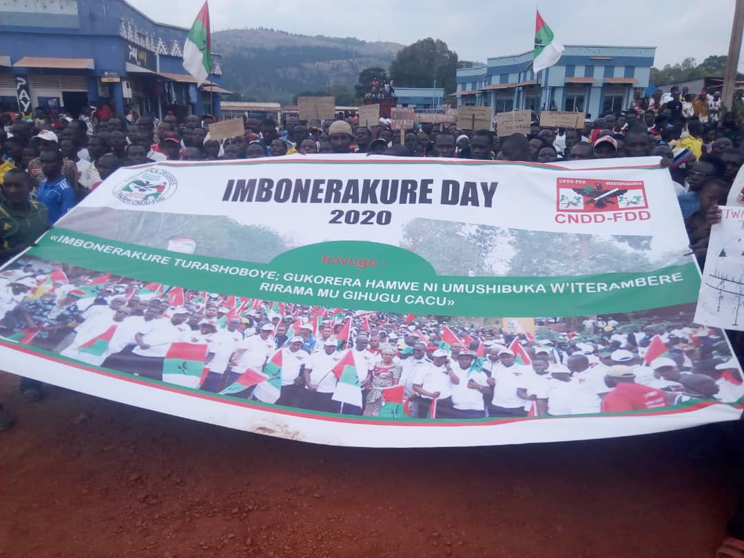 CANKUZO, 29/08/2020 – Les IMBONERAKURE de CANKUZO ont organisé un rassemblement impressionnant. En présence de l’Hon. NJEBARIKANUYE Spès Caritas, Vice Présidente du Séant du Burundi. La journée était dédiée aux IMBONERAKURE au CNDD-FDD, première formation politique du BURUNDI : – IMBONERAKURE DAY 2020 – . De nombreux discours ont été faites par de nombreux participants. Expliquant surtout les actions des IMBONERAKURE au cours des divers années dans la province.
