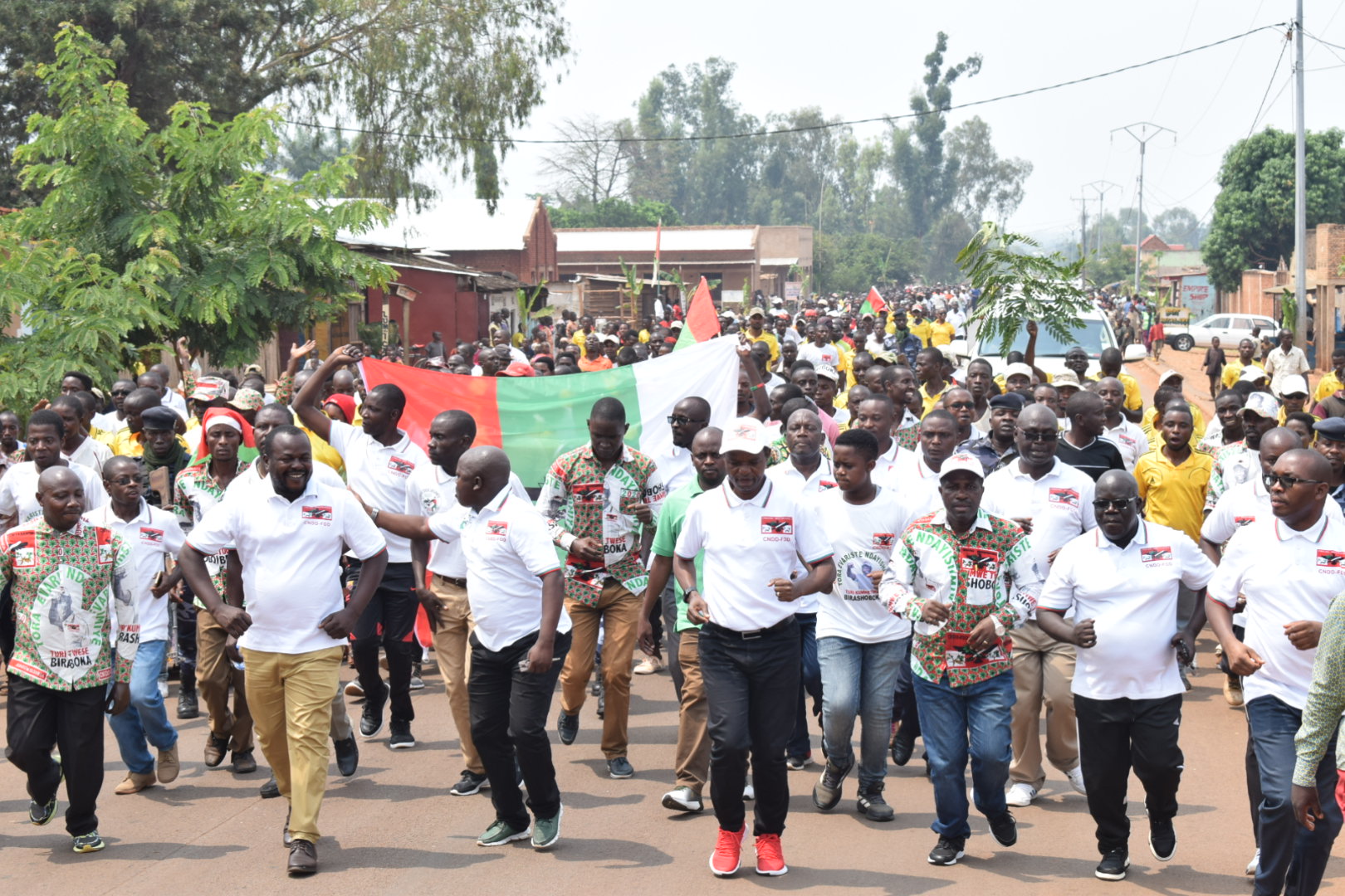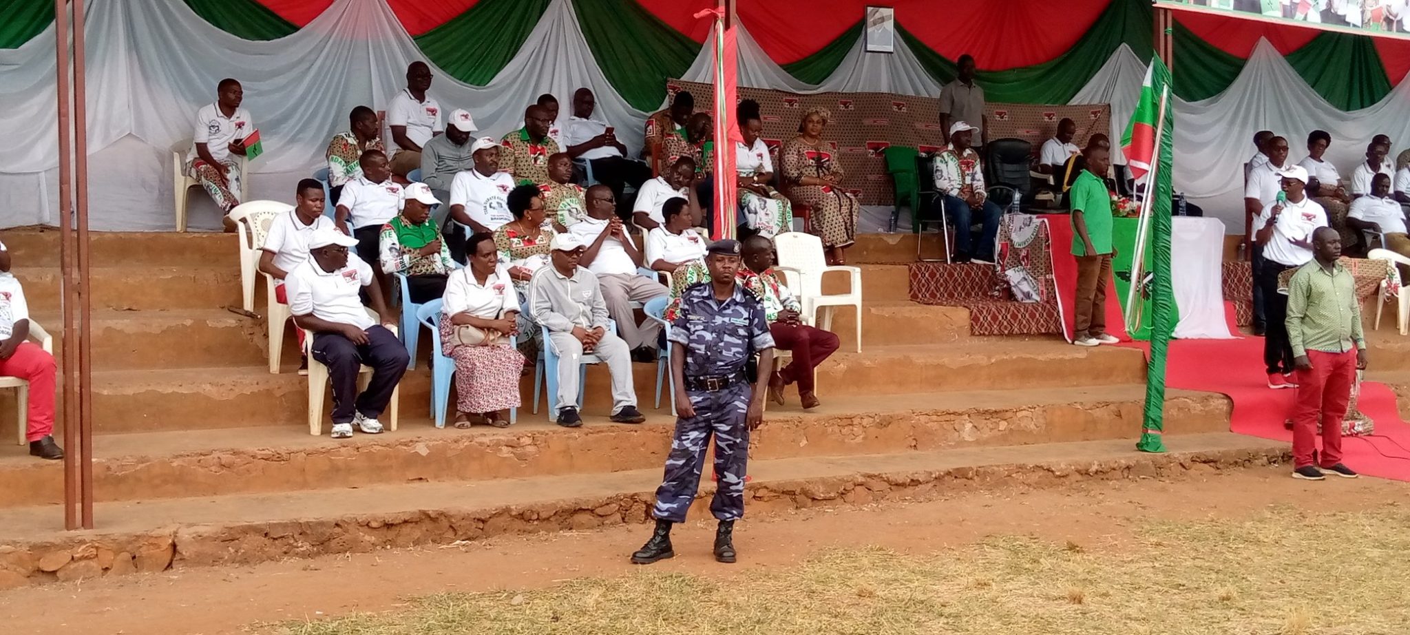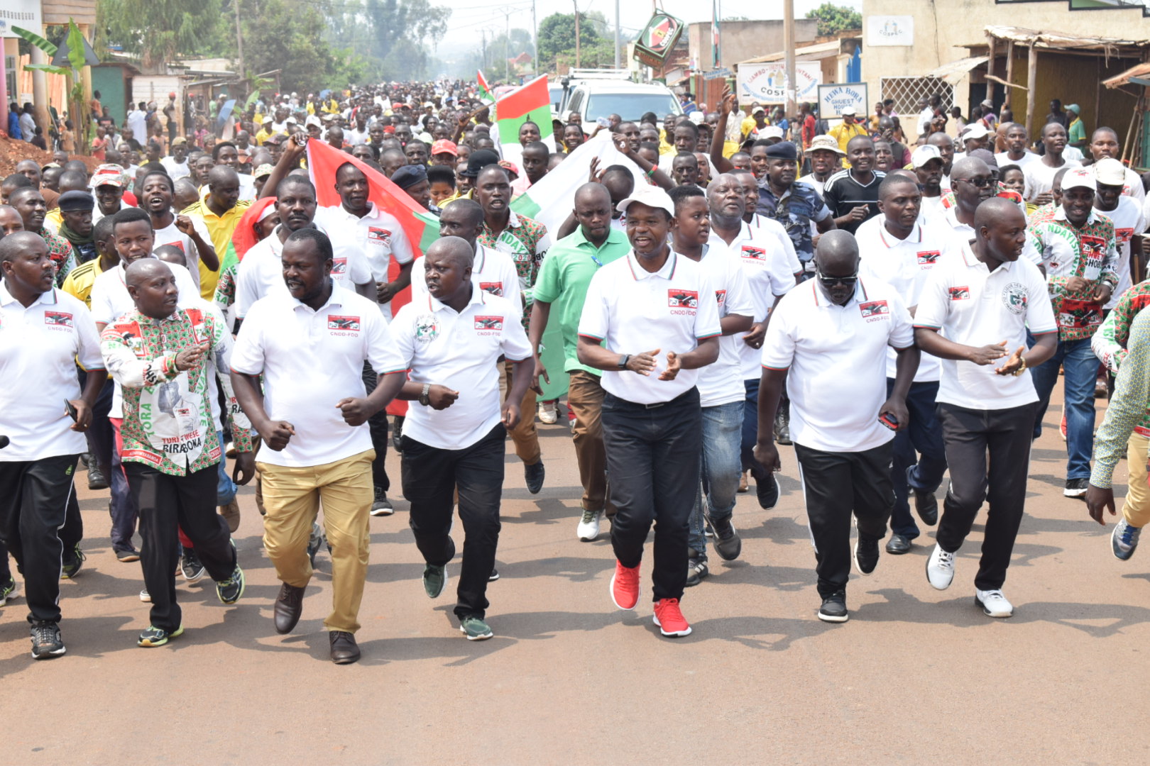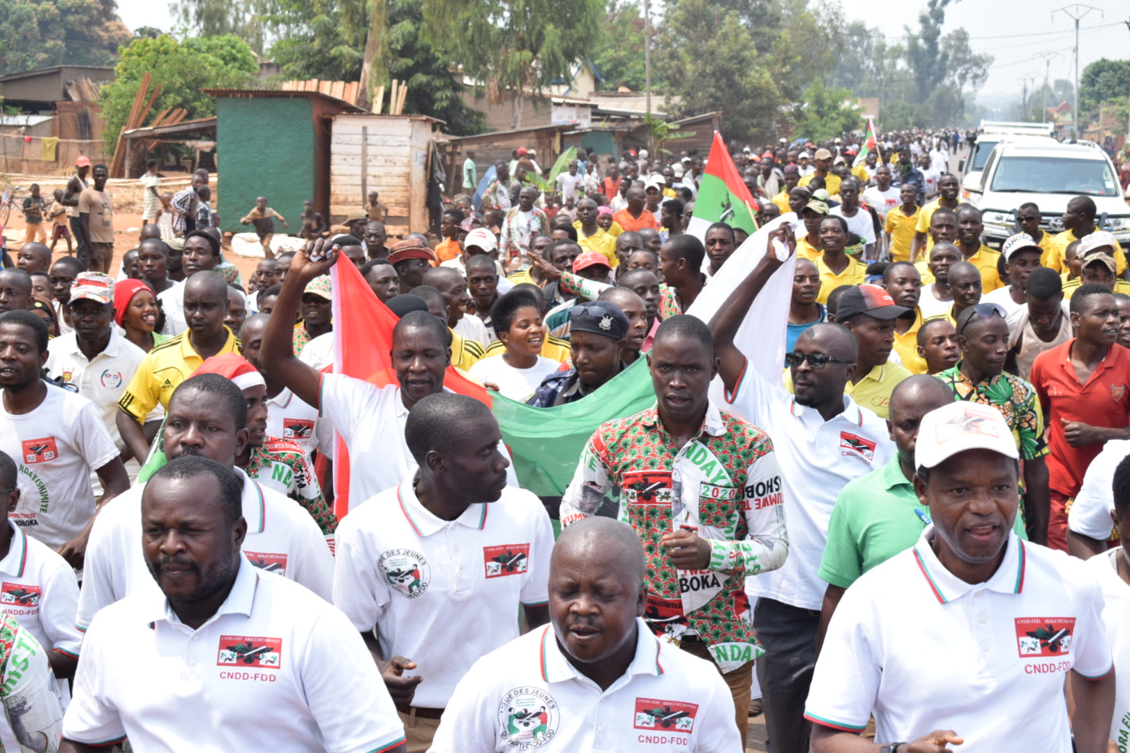 CIBITOKE, 29/08/2020 – Les IMBONERAKURE de CIBITOKE s’étaient donnés rendez vous en commune RUGOMBO. Plus exactement au stade de RUGOMBO pour un rassemblement de plusieurs milliers de militants. Ensemble, ils ont défilé dans un premier temps dans les rues de RUGOMBO en chanson. Et surtout dans la bonne humeur ! Tous les représentants de CIBITOKE ( députés et sénateurs) étaient présents , autour de l’Hon. SINZOHAGERA Emmanuel, Président du Sénat du BURUNDI.