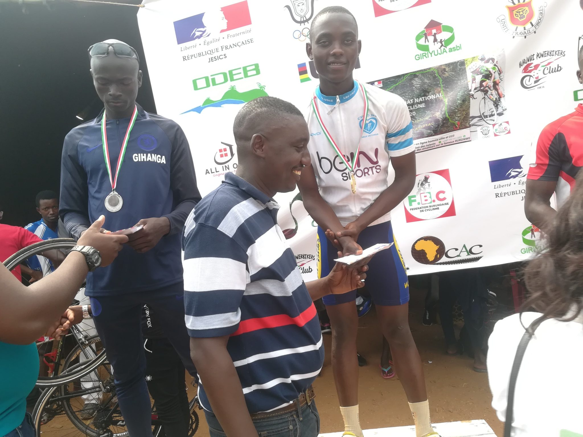 CIBITOKE, 7/09/2020 – M. NIZEYIMANA Jacques est un jeune cycliste. Il a gagné le Championnat national du cyclisme, édition 2020. Parcourant 50 kilomètres en 1h36’34 ». Remportant la médaille d’or en catégorie – Juniors garçons. Il s’entraîne au club Mirage à CIBITOKE.