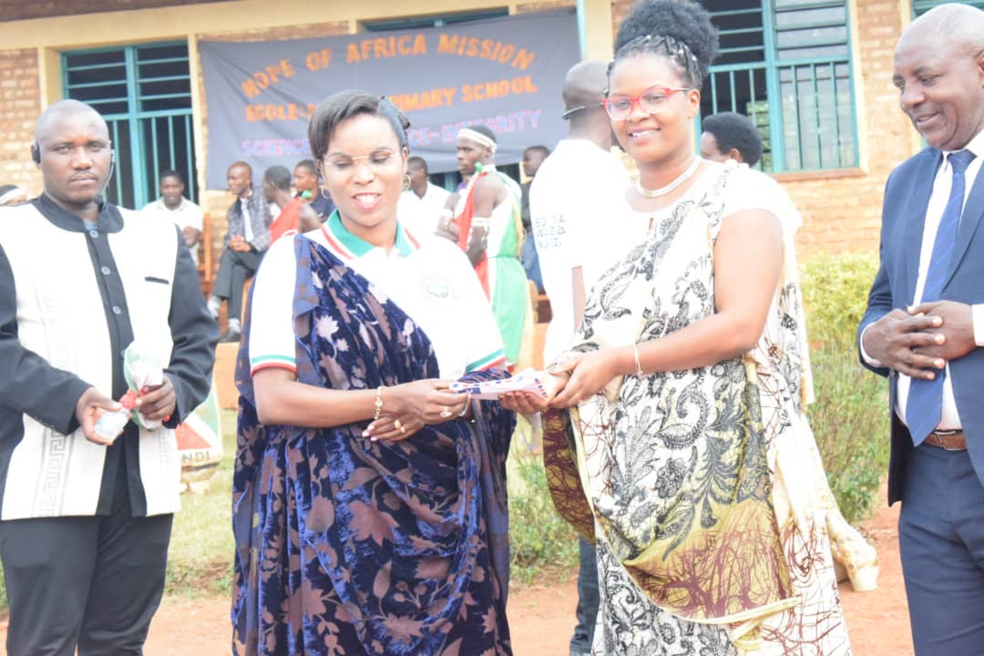 NGOZI ( Commune NGOZI ), 10/09/2020 – S.E. Mme NDAYUBAHA Angeline, Première Dame du BURUNDI, était en visite à NGOZI. Accueillie comme il se doit par M. BARANYIKWA Epipode, Gouverneur de NGOZI. Se rendant à l’école » A sante primary School » sur la colline KINYANA. Elle y a distribué des dons destinés aux élèves et aux enseignants de cette établissement. Les jeunes étudiants étaient très heureux, ainsi que leurs enseignants. Les dons comprenaient des sacoches, des cartables et des cahiers.