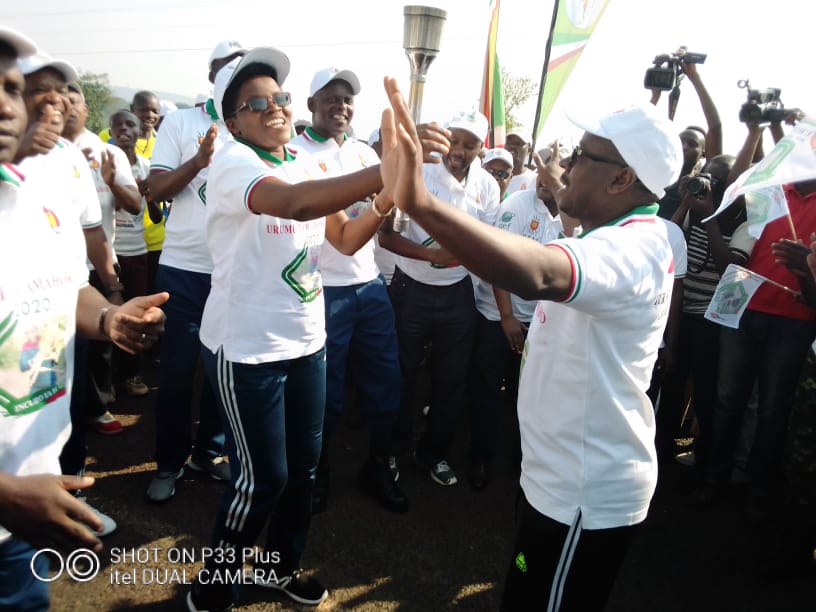 CANKUZO, 22/09/2020 – M. BANYIYEZAKO Boniface, gouverneur de CANKUZO, a reçu le Flambeau de la Paix 2020, des mains de M. BARUTWANAYO Jean Claude, Gouverneurs de MUYINGA, et de Mme MBARUSHIMANA Calinie, gouverneure de KARUSI.